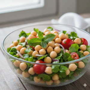 Salada Refrescante de Grão-de-Bico com Hortelã, Salsinha e Coentro
